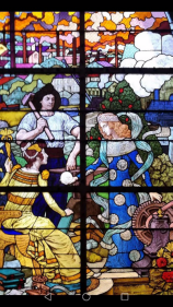 (图片:位于法国巴黎工商会,创作于1900年的知名玻璃画:Le Travail, par l'Industrie et le Commerce, enrichit l'Humanité译文:工业和贸易为人类带来富足)